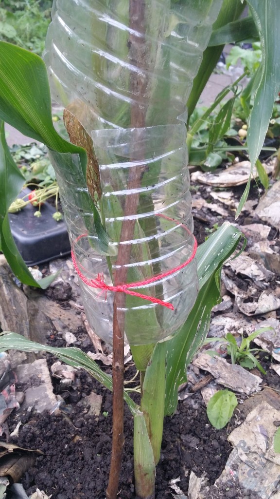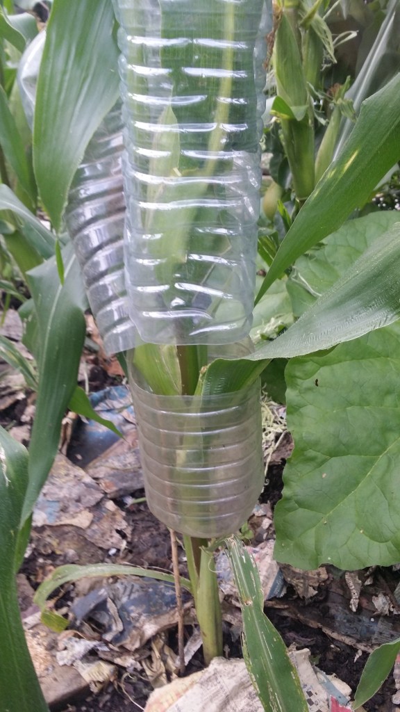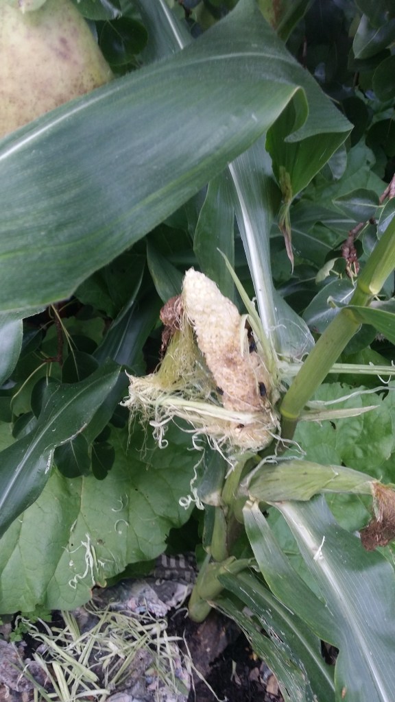 As in previous years my sweet corn has started being eaten by something – I suspect squirrels.