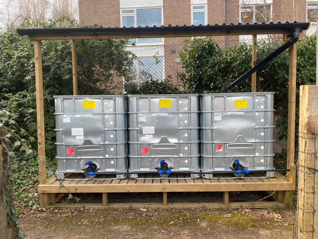 Despite the lack of the usual North West rain since their installation in Spring 2022 they have provided us with that extra bit of water during a very hot summer. To complete the project, we have altered all our stand pipe taps to only flow when hand pressed, so there will still be mains water on the site but we hope with a considerable saving.